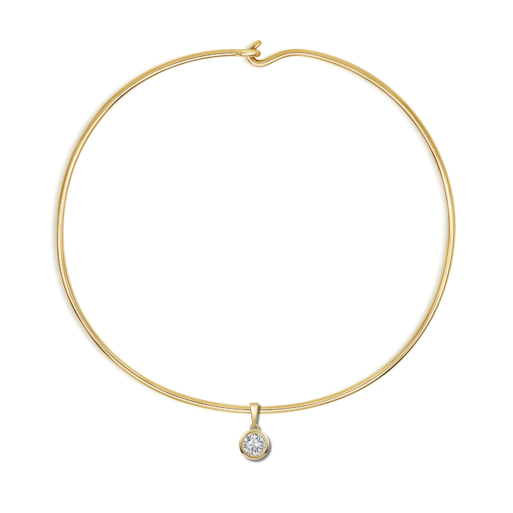 A rigid, open-ended neckpiece or bangle, traditionally made of metal and worn close to the skin; a design rooted in ancient adornment and reimagined in contemporary jewellery.