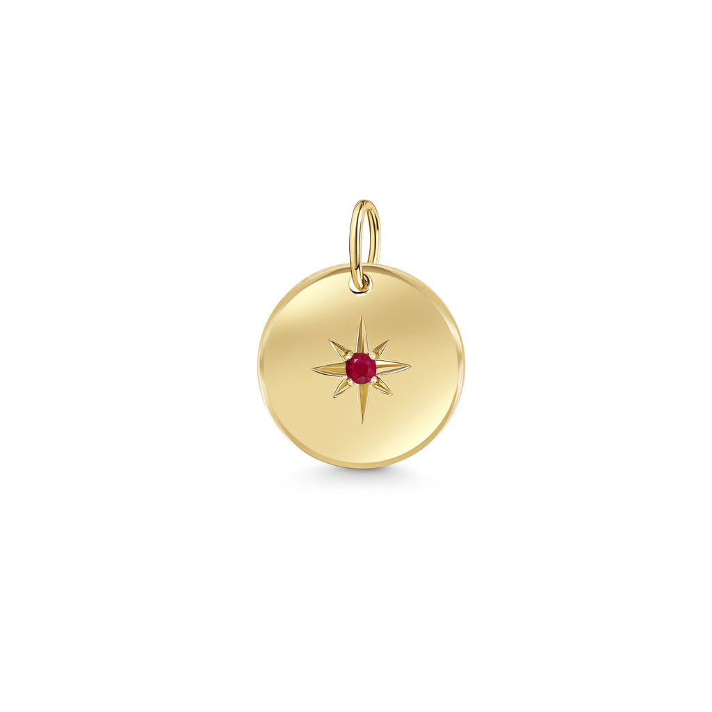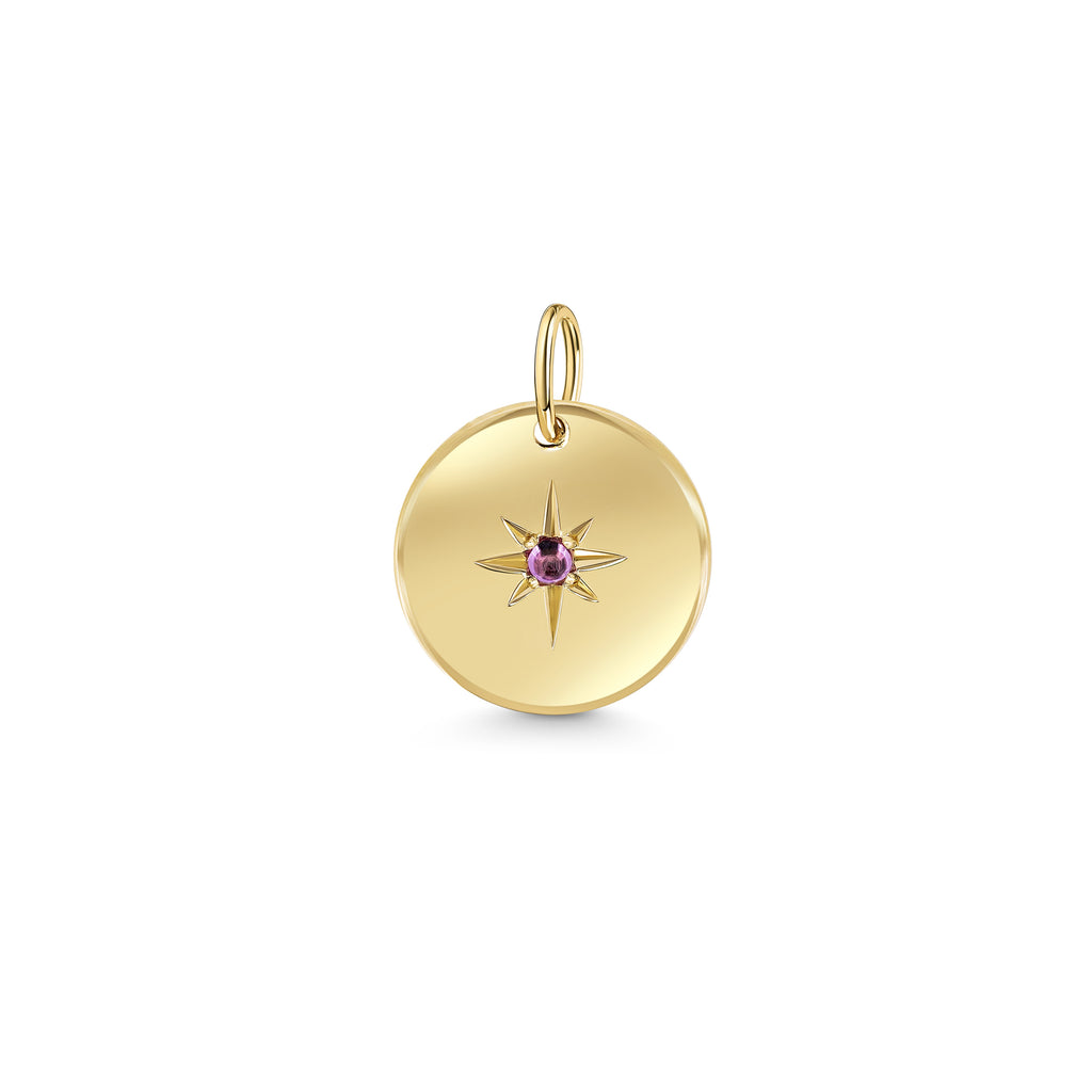 Introducing an SB customisable staple, the Shooting Star Birthstone Pendant is set with the gemstone of your choice, representing yours or your beloved's birth month in beautiful shooting star engraving. Incredibly personal, the 9K yellow gold disc highlights the chosen gemstone in a beautiful gold setting. Part of the SB Modular edit, the pendant is designed to dangle from one of our Gold or Diamond Modular Connectors.